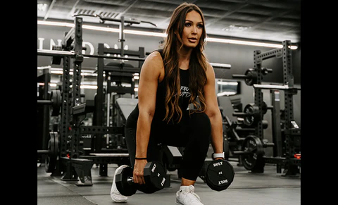 Hold your dumbbells by your side. Step back and have the back knee touching the ground. Get down low and do 10-12 reps on each leg
